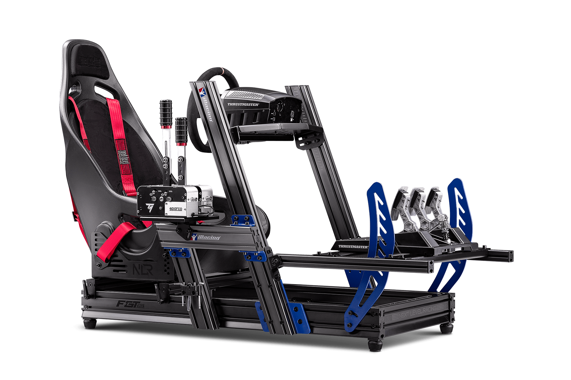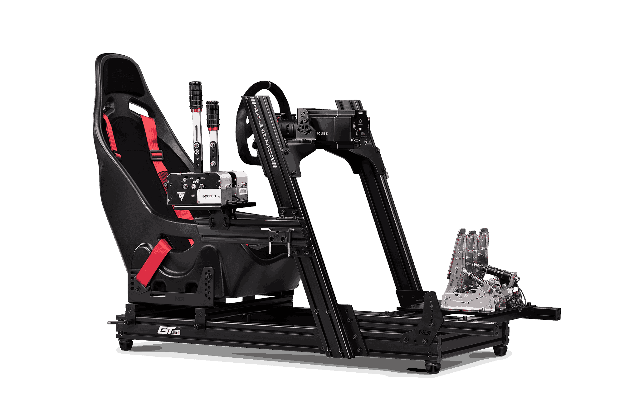 | Key Features | Support for Formula, GT, Hybrid, Truck, and Tank driving positions. -Features 6mm pedal adjustment fins with Next Level Racing® Shoulder Bolts to allow for a quick transition between driving positions. -5mm Wheel Deck compatible with a wide range of wheels on the market. -Features a 5mm thick Split Pedal Plate design allowing compatibility with a wide range of pedals on the market. -Features a safety footstep for ease of access. -Pre-machined holes for ease of assembly and extra rigidity. -5mm Seat brackets with shoulder bolt slot design to allow for quick angle adjustment. -Premium packaging including double boxing and moulded foam. -Shifter and handbrake plate compatible with a wide range of shifters and handbrakes on the market. -Compatible with Next Level Racing® Motion V3 and Motion Plus platforms*. -Flex free seat sliding system to eliminate flex issues found in conventional seat sliders. -Next Level Racing® Height Adjustable shock absorbing feet to prevent cockpit misalignment caused by uneven floors. -Reinforced shifter plate compatible with a wide range of shifters and handbrakes on the market. -Direct shifter setup for Next Level Racing® Motion V3 Platform allowing the shifter to move with the seat for extra immersion. -Alignment markings to help with alignment. -Features a Next Level Racing® Toolkit for ease of assembly. -Hardware for mounting peripherals included. -Custom 40/160 Aluminium Extrusion for rigidity. -Included Next Level Racing® custom end caps for a more streamlined T-nut installation process. -Wide Full Width T-Slot nuts which prevents in-channel twisting thus increasing rigidity and sturdiness. -Compatible with Next Level Racing® Traction Platform (requires Motion Kit). |