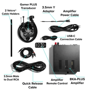 Gamer PLUS takes the place of Gamer2 and Sim Kit with all new and upgraded interconnects, cabling, clamping and mounting. The new Gamer PLUS amplifier has a digital volume display that automatically remembers your last setting and a wireless remote control for ease of use.