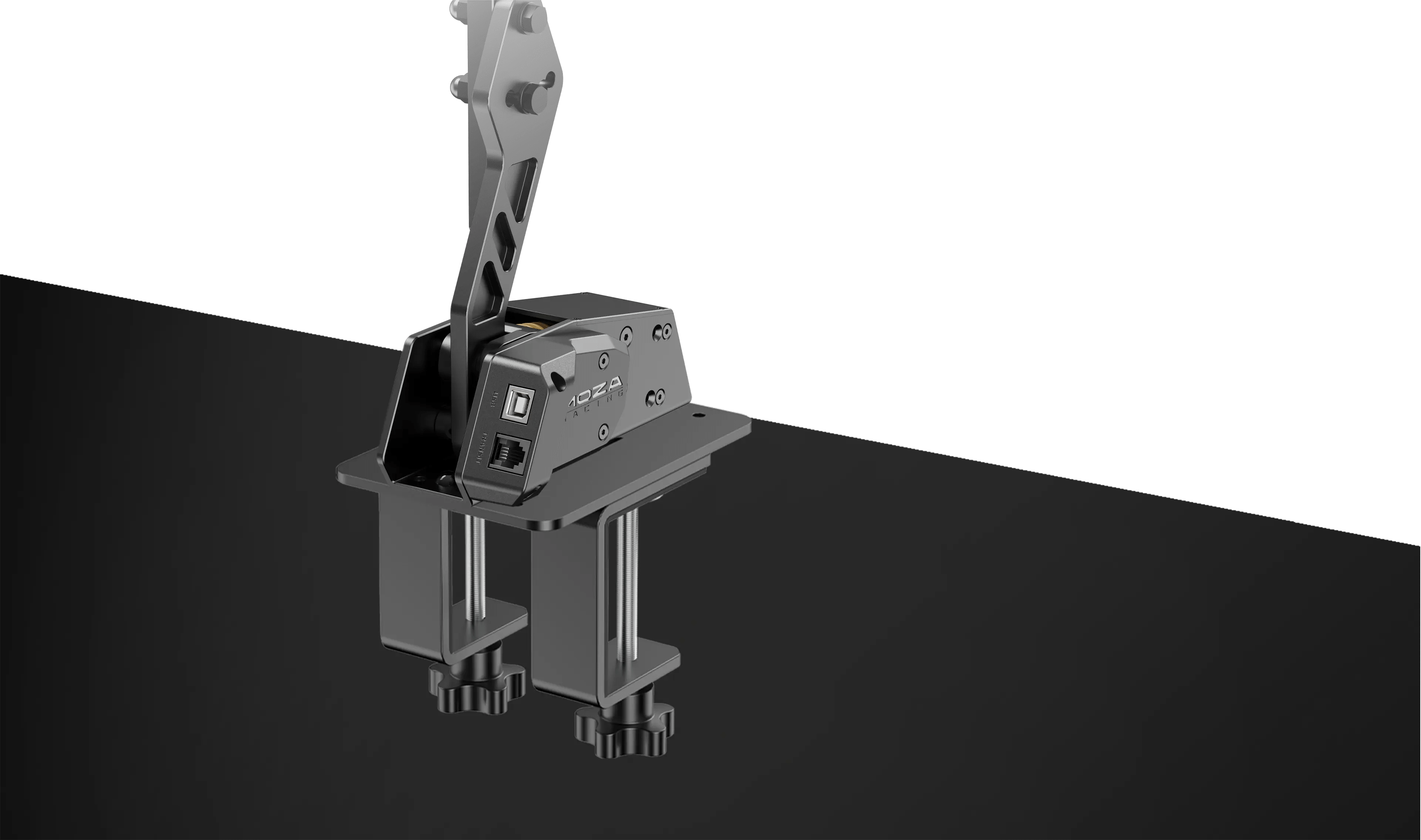 The MOZA HBP handbrake is ergonomically and beautifully engineered. It can be easily mounted on most racing rigs. In addition, we will offer optional table clamps for users without an entire rig.
