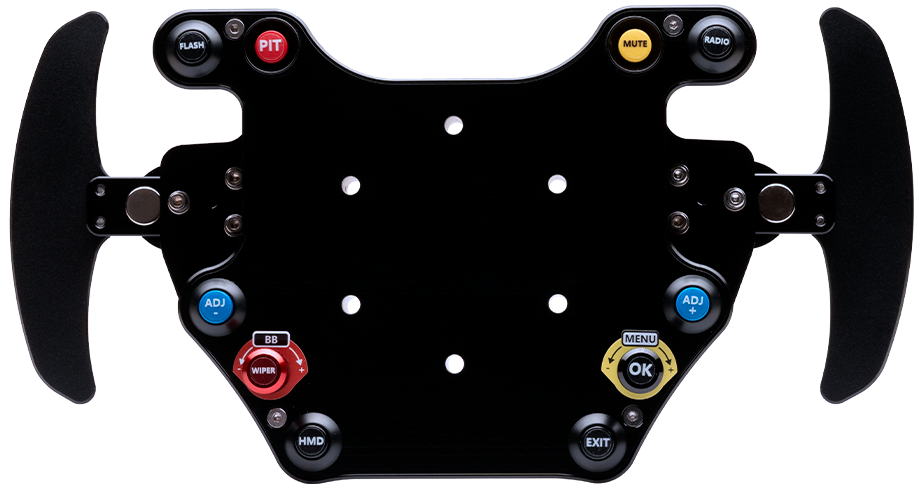 You can configure the 16 inputs (8x push buttons, 2x encoders with push button functionality and the 2x push buttons enclosed with button guards) yourself and assign functions to your racing title. You can also adjust the shift paddles.