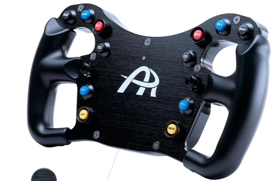 Built with aluminum to mill the five-millimeter steering wheel end plate. The entire high-quality housing of the Ascher Racing steering wheel is solidly crafted and out of aluminum. The signal gets wirelessly fed to the Simucube 2 Wheel Base. Without lags. The high-grip Ascher Racing F28 V2 is torsion-free – no matter how long your stints last.