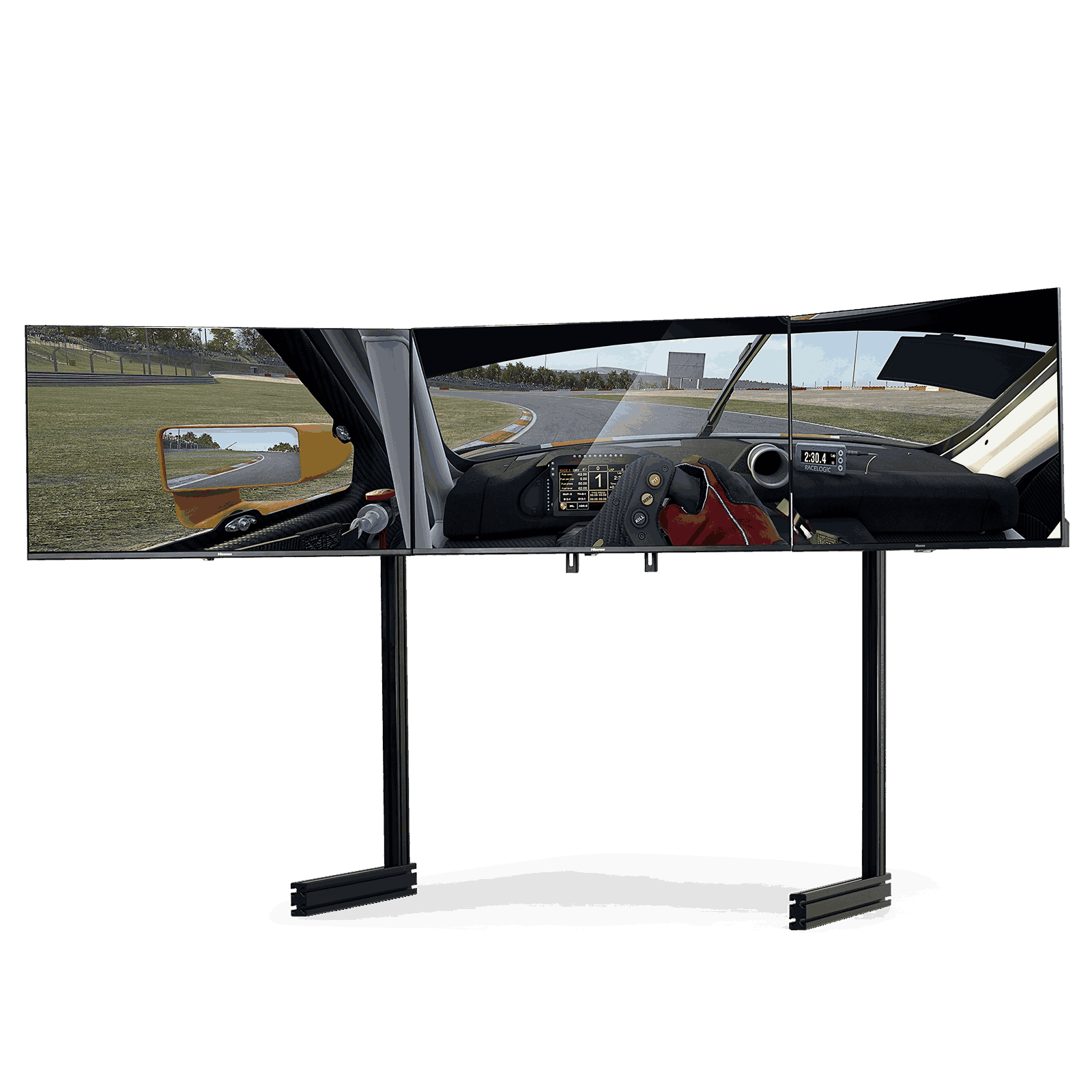 The Next Level Racing® Elite Freestanding Triple Monitor Stand Black Edition offers sim racers the complete triple monitor mounting solution. Constructed from high-grade 6063 aluminium extrusion, the Elite Freestanding Triple Monitor Stand Black Edition supports three 21” – 43” monitors for the most immersive sim racing experience.