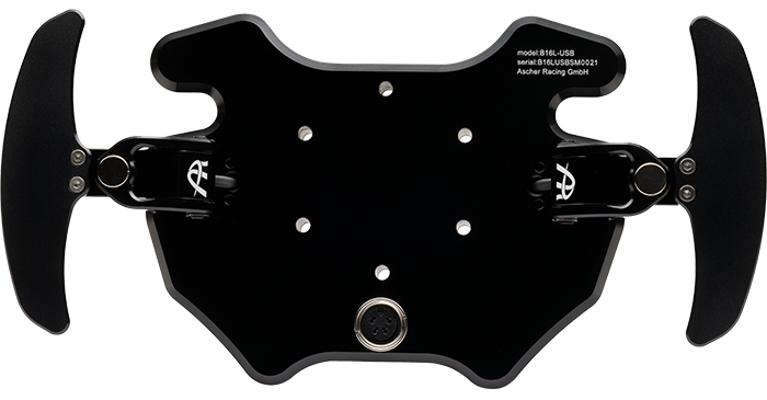 On the B16L USB buttonplate we mount our shift paddles, which have which are used in real motorsport. The paddles are milled from aluminum and the positioning can be changed. You can also adjust the resistance of the paddles using different spacers and included magnets.